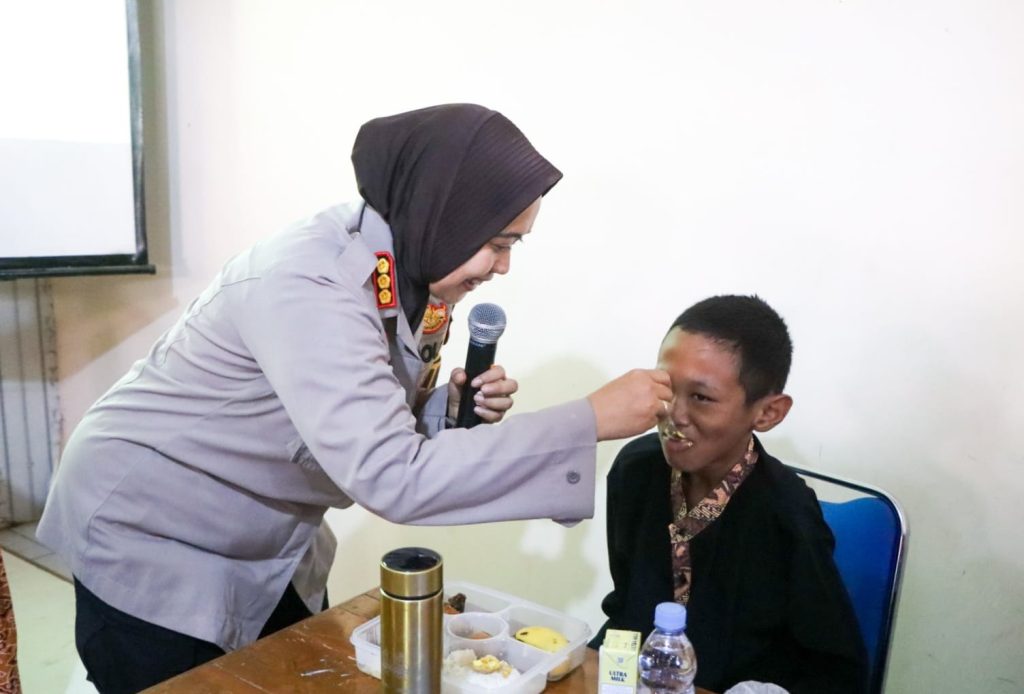 “Kami sudah berjanji dengan kepala sekolah untuk melaksanakan program ini. Selain itu, kami juga menyediakan makan siang bergizi bagi siswa-siswi SLB, yang terdiri dari nasi, lauk telur dan ayam, sayur, pisang, dan susu. Semoga kegiatan ini dapat memberikan semangat dan motivasi kepada anak-anak untuk terus berjuang meraih cita-cita mereka di masa depan,” ujar Kombes Pol. Sumarni.